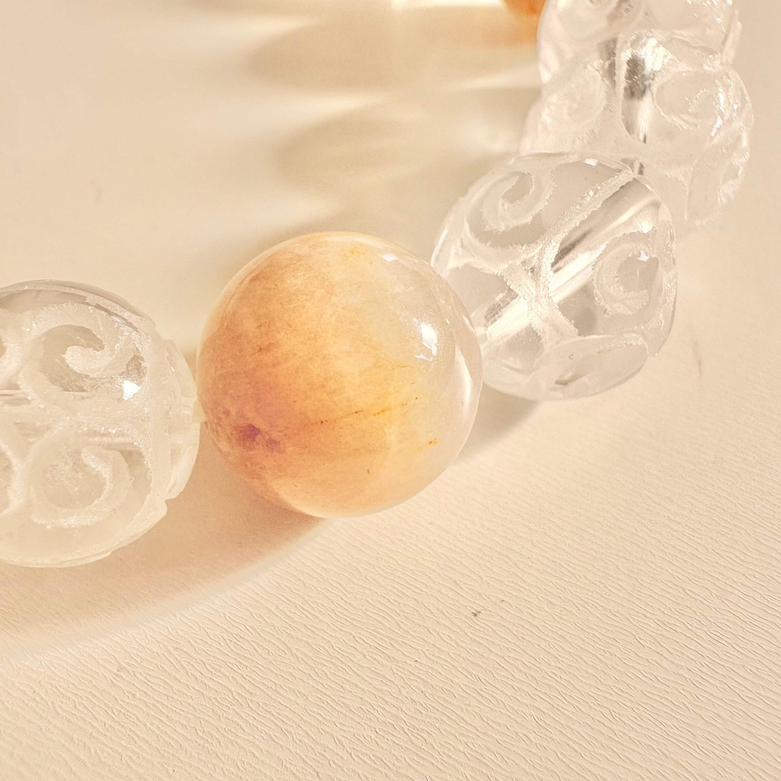 安定の優しさ♡ラビットヘアルチルとカービング水晶の大きめブレスレット