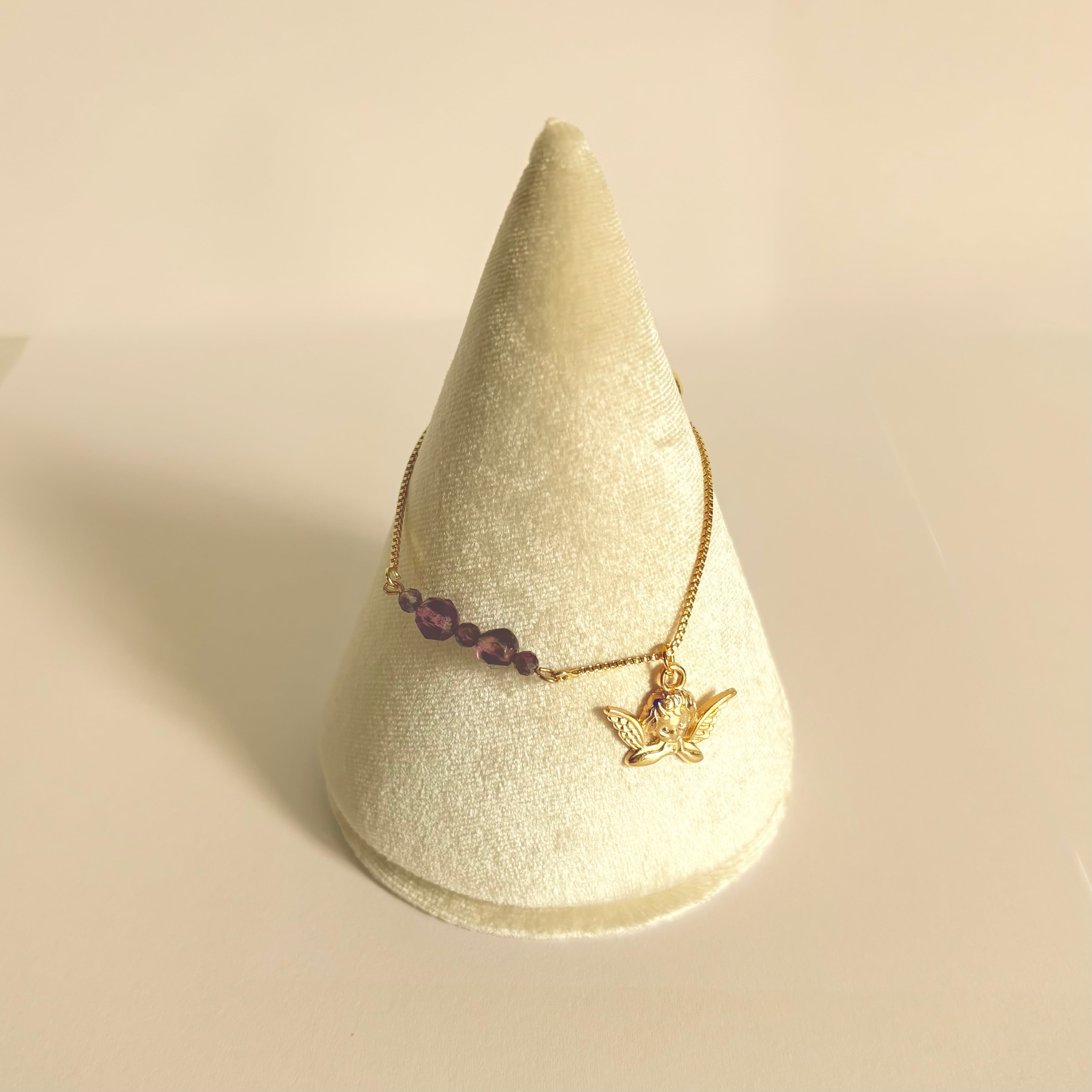 アメジストはカットビーズを使用しており、角度が変わるたびにキラキラと可愛く光ります。