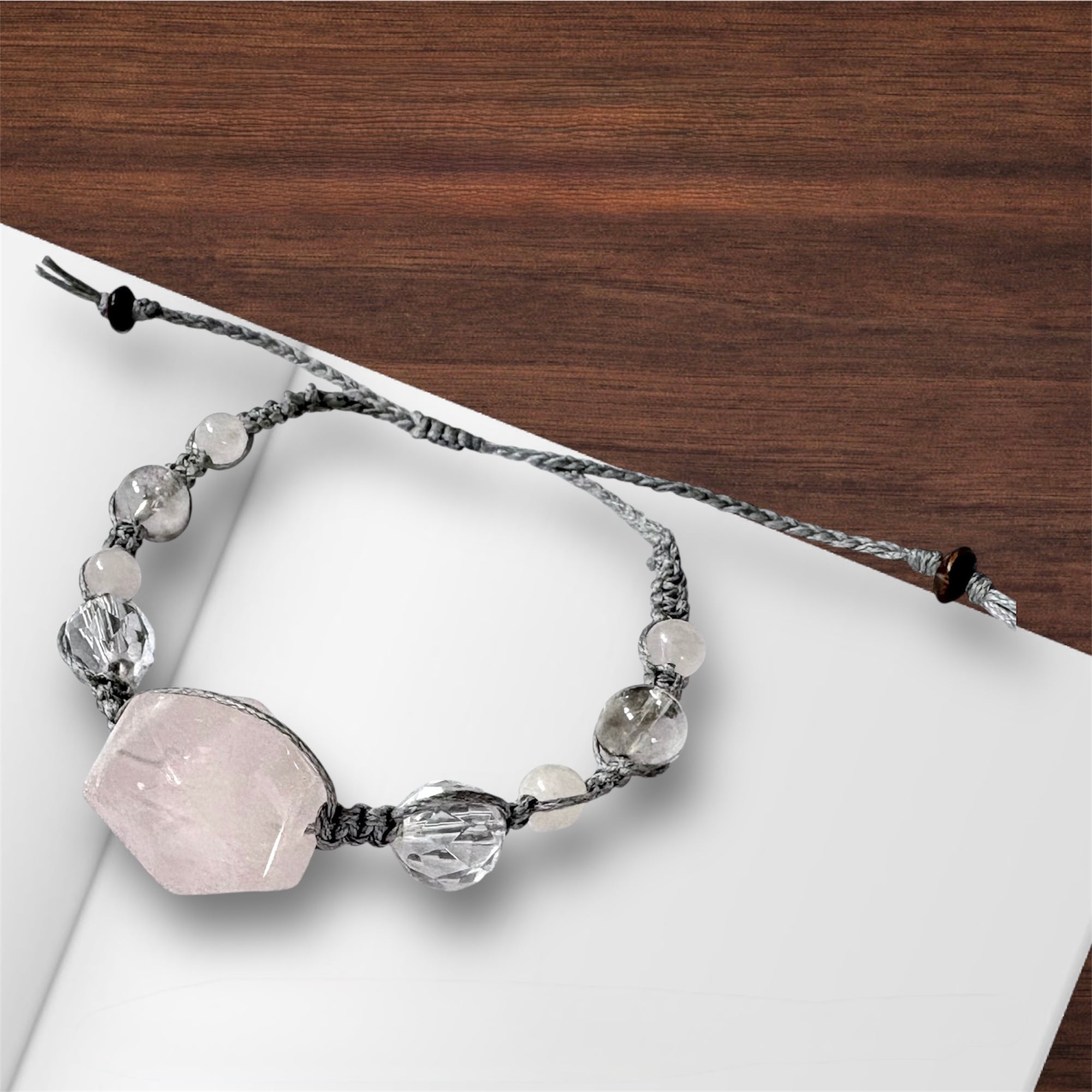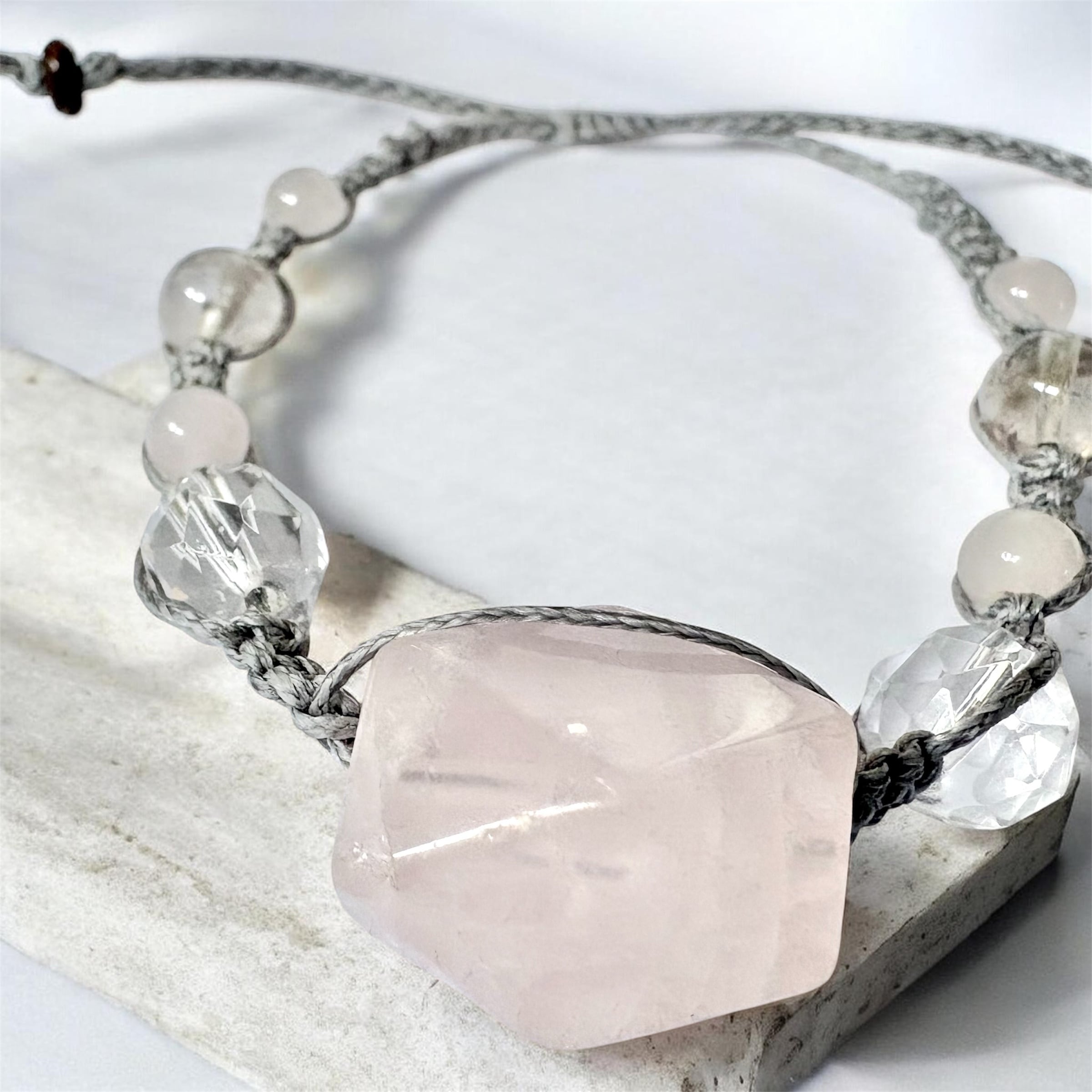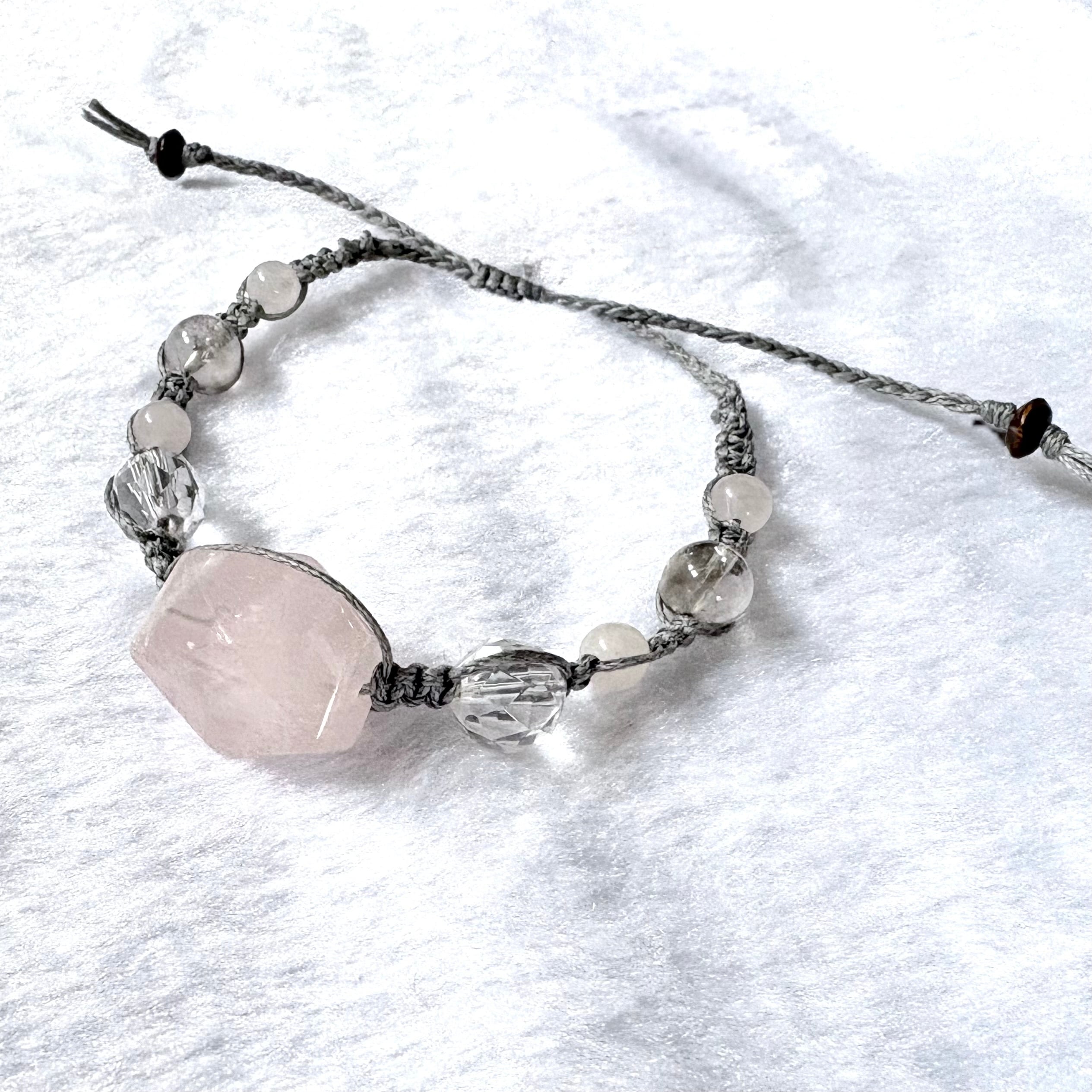 静かな愛情を演出♡ローズクォーツのマクラメブレス