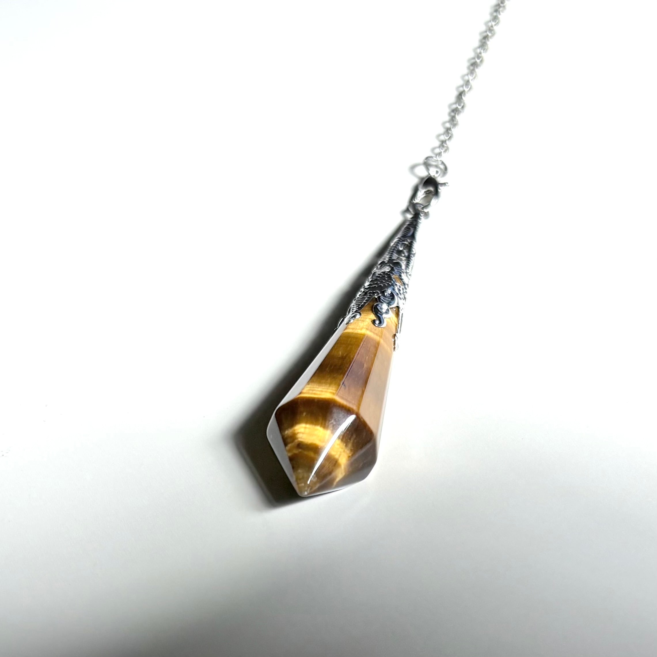天然のタイガーアイを使用しているため、各ペンデュラムがそれぞれに異なる美しさを持ち、その特別な輝きをぜひ体感してください。