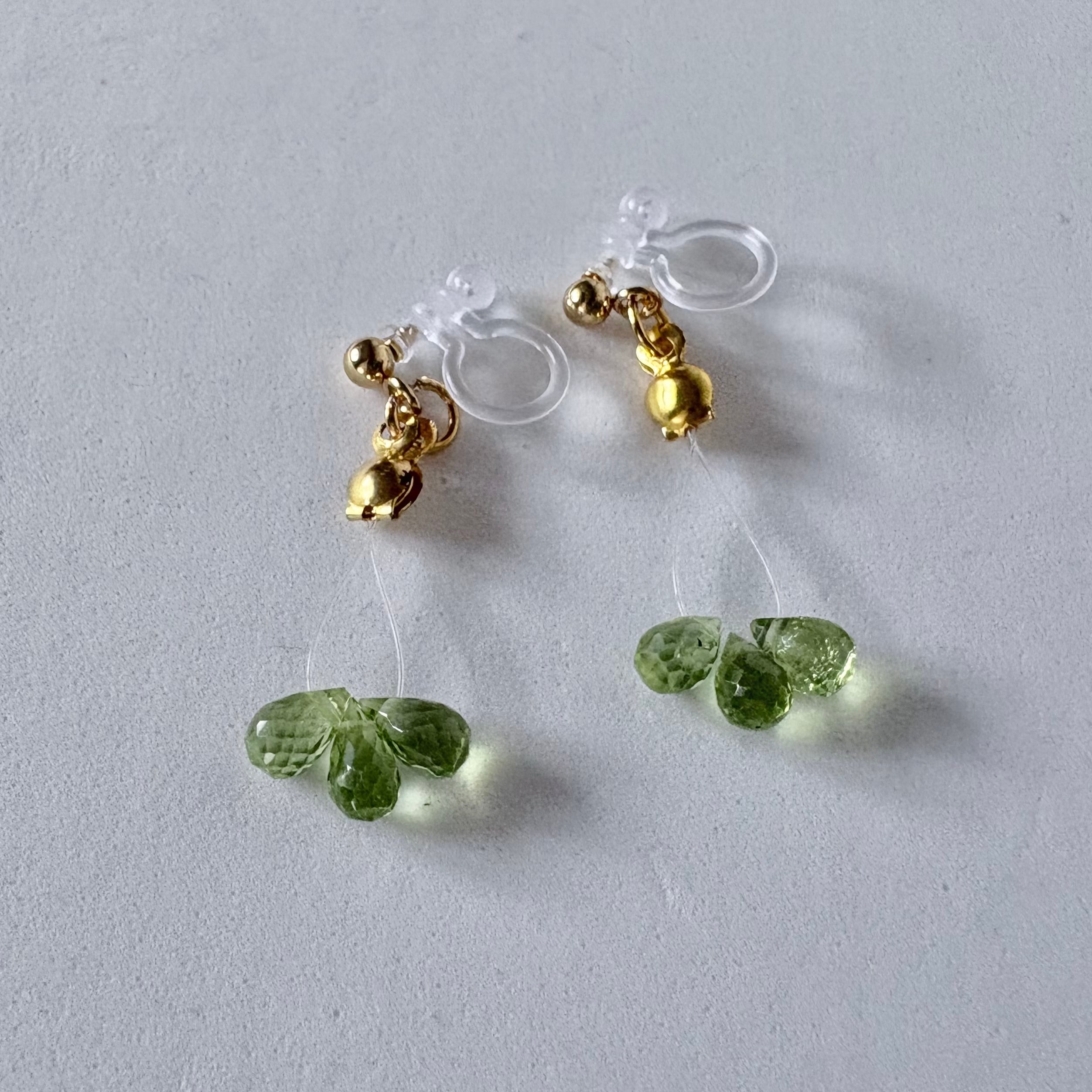 ■癒しの緑を耳元に◇ペリドットのミツバピアス