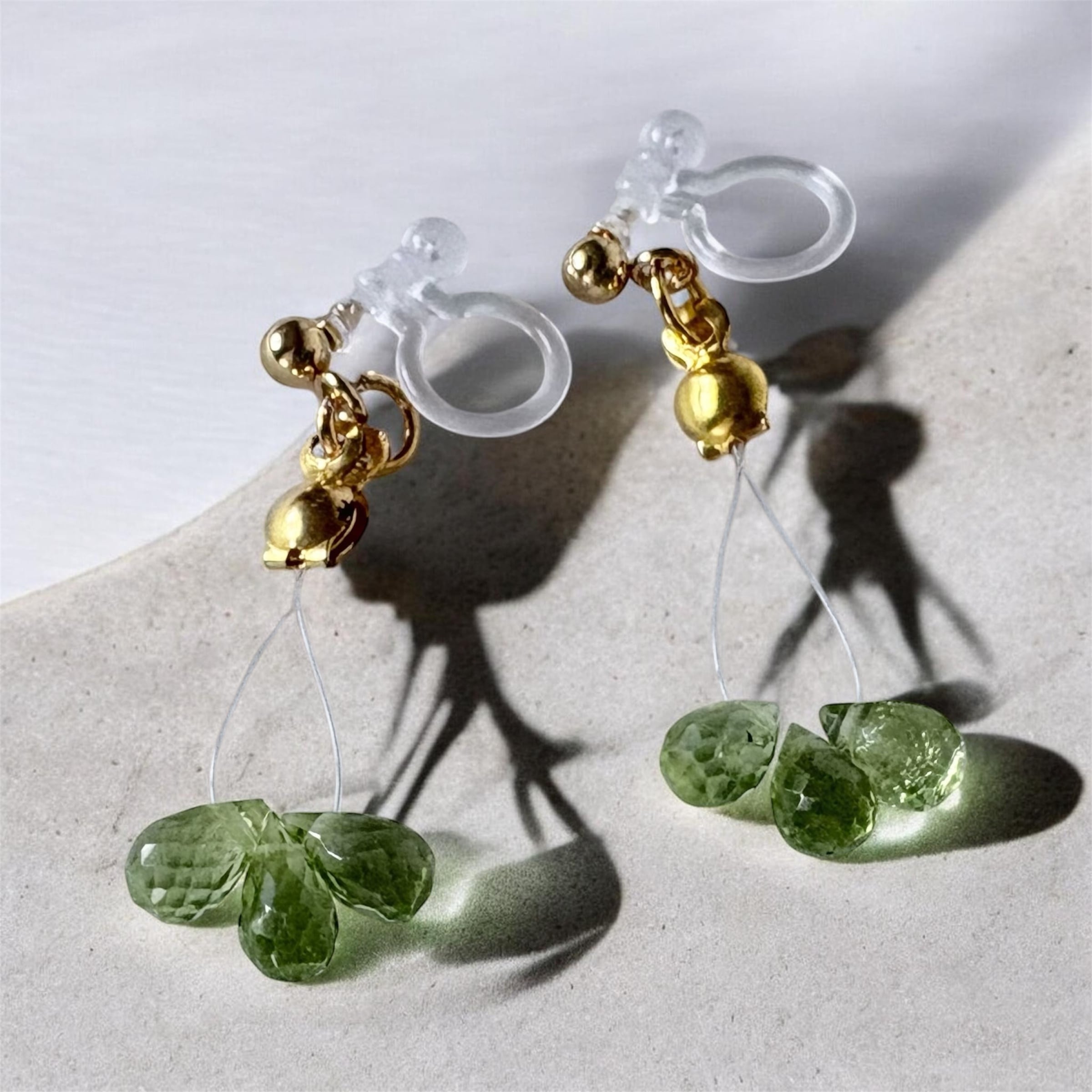 癒しの緑☘️ペリドットのミツバピアス