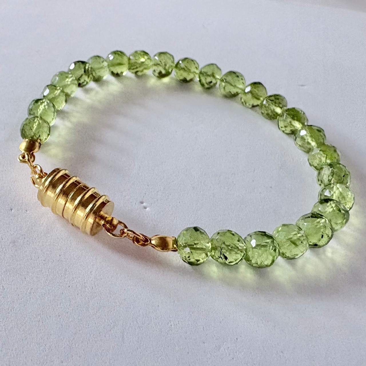 鮮やかな緑色のペリドットを使用したこのブレスレットは、日常に明るさを添えるとともに、心を穏やかに保つ力を秘めています。華やかさと洗練さを兼ね備えたデザインで、さまざまなシーンで映えるアイテムです。