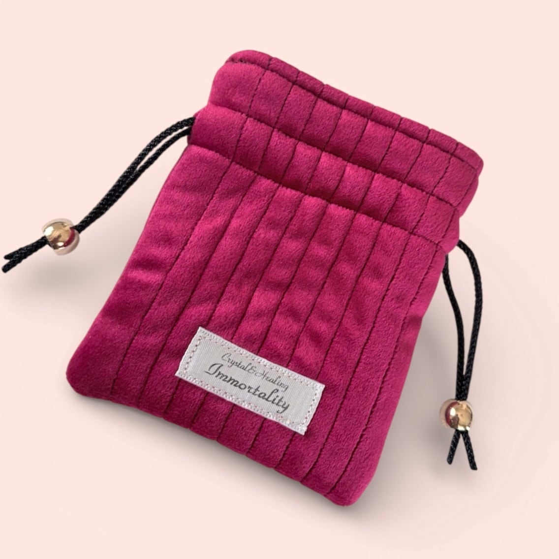 パワーストーンや小物をかわいく持ち運ぶための、おしゃれな角形巾着クッションポーチです。
