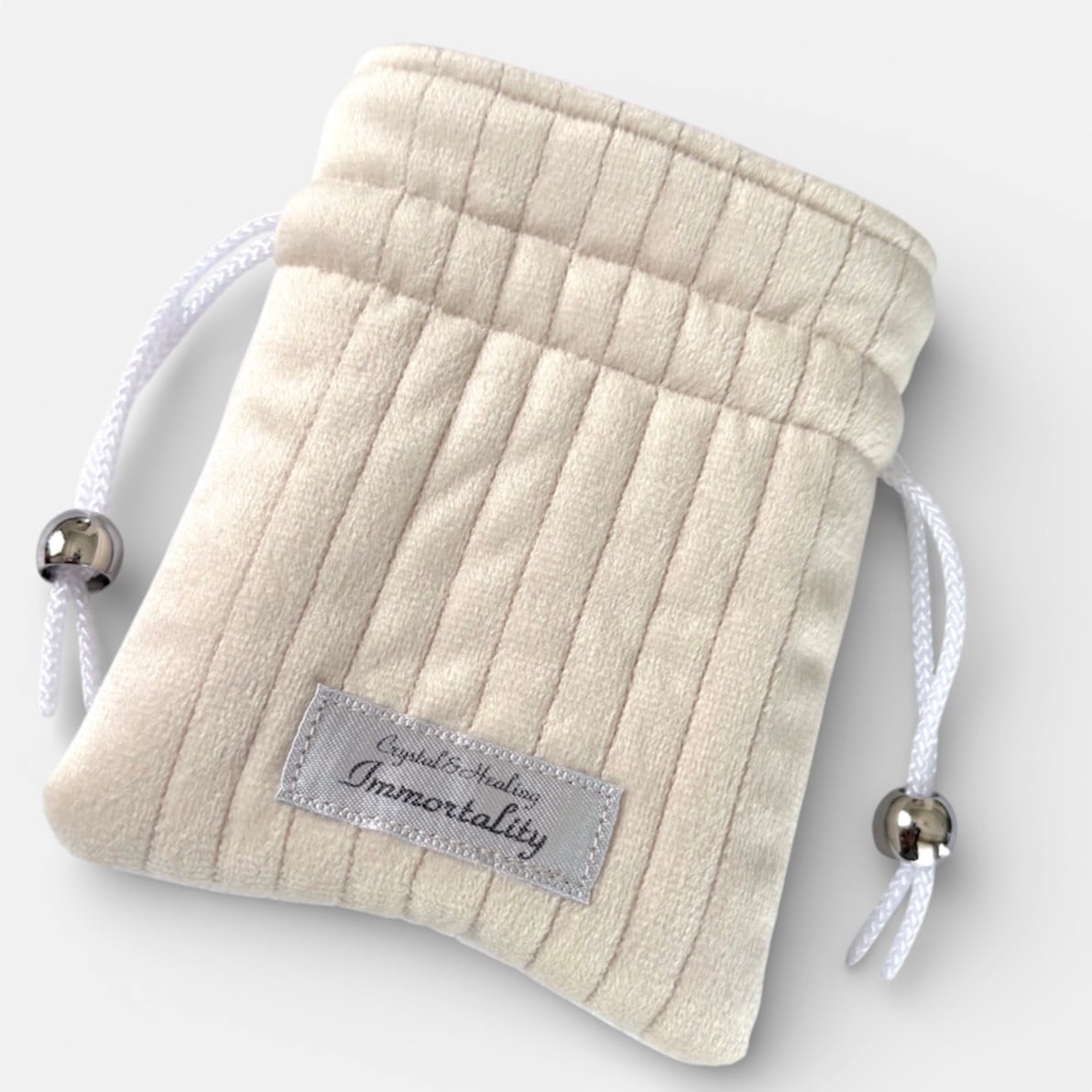 パワーストーンや小物をかわいく持ち運ぶための、おしゃれな角形巾着クッションポーチです。