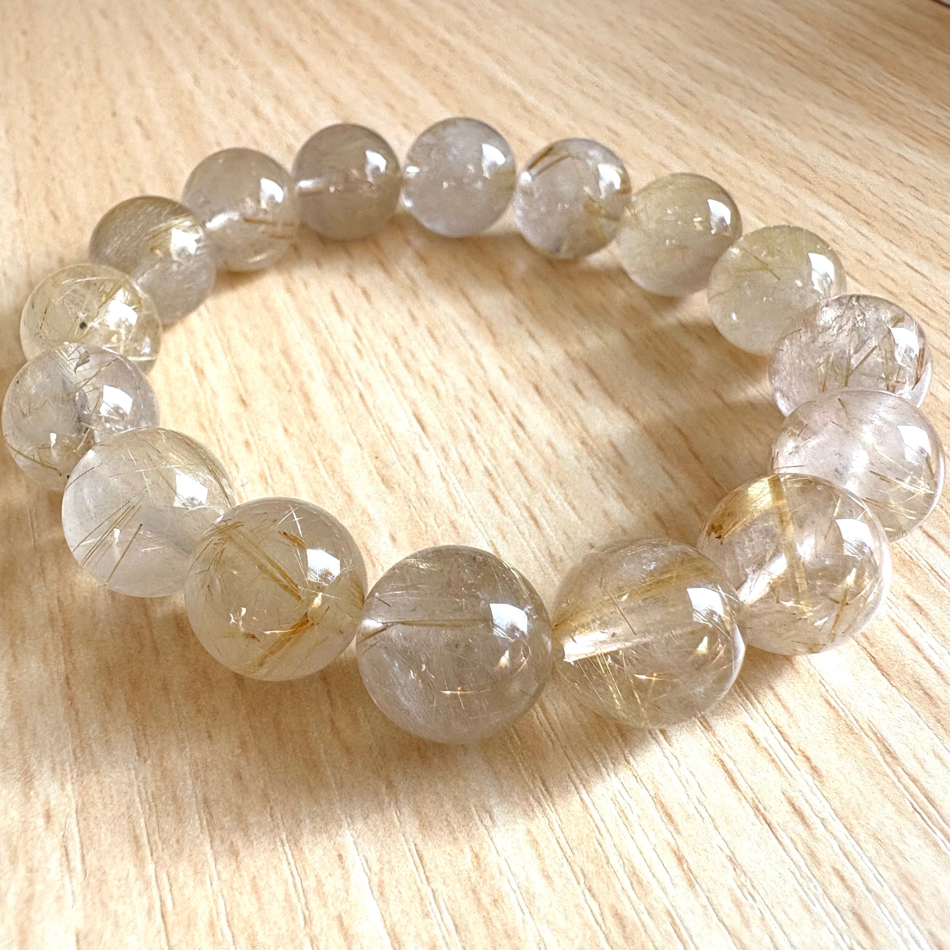 願望実現◇ルチルクォーツ15cm 12mmビーズ